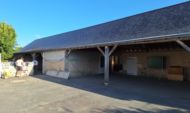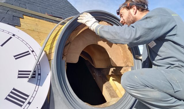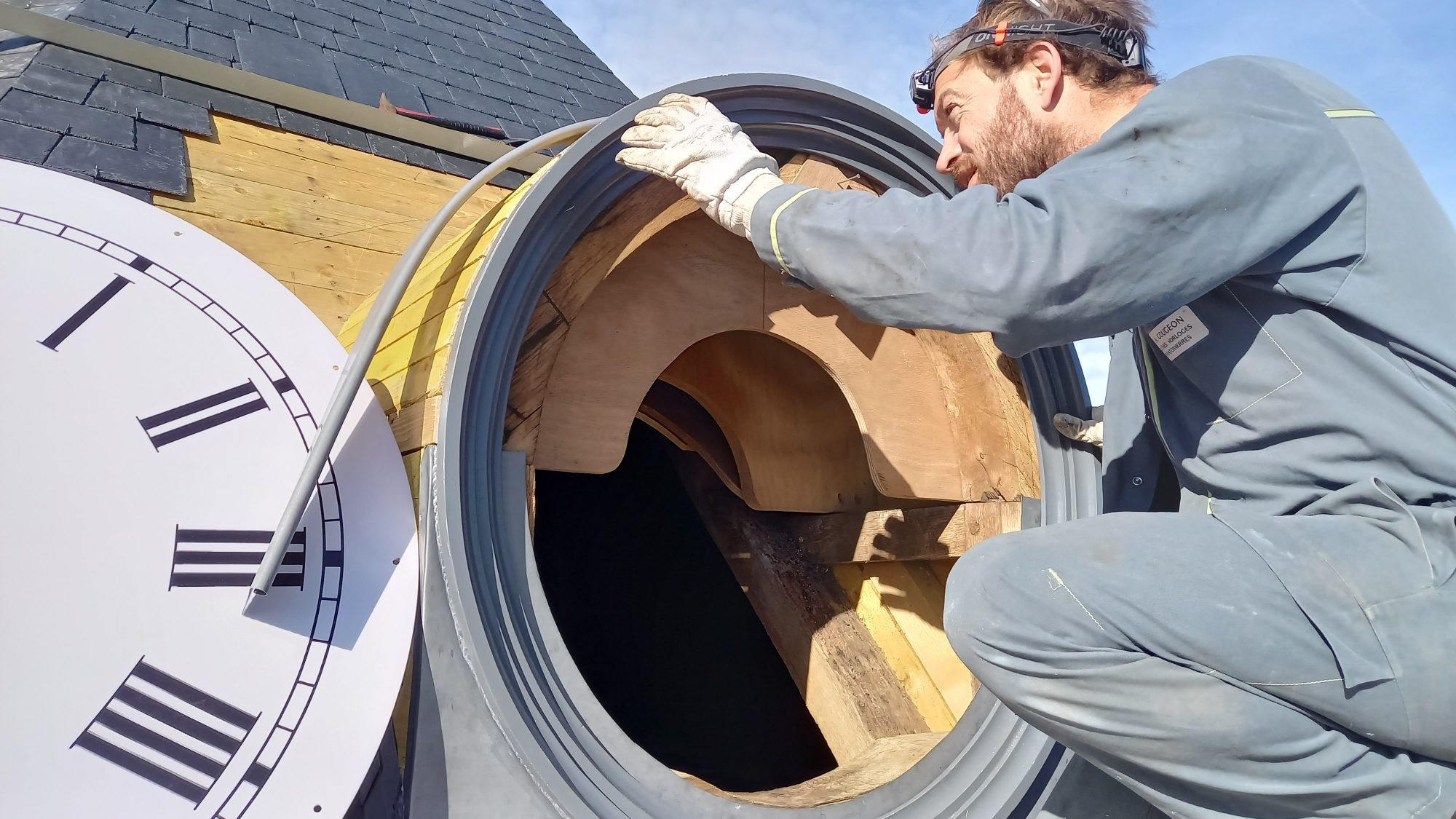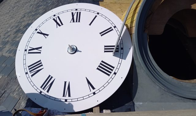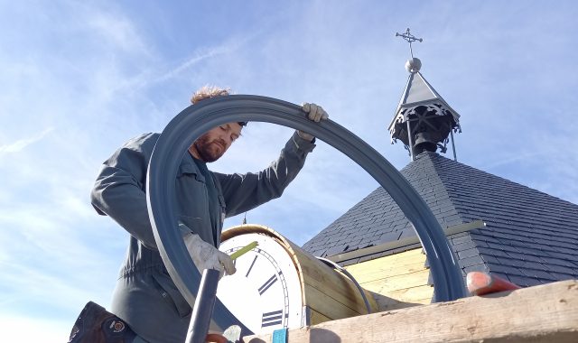 Ces travaux ont étés confiés à l’entreprise locale « Bertrand Couverture » qui a également procédé au remplacement du clocheton. La rénovation de la petite horloge a été réalisée conjointement par l’artisan campaniste Gougeon et la menuiserie Roger.